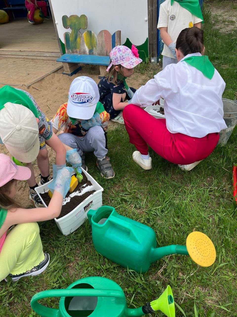 Ребята отправились в увлекательное путешествие в мир природы — наблюдали, размышляли и рассуждали, почему так важно беречь нашу планету. А чтобы лучше запомнить экологические правила, дети посадили рассаду цветов на своем участке. Саженцы рассады ребята осторожно поместили в углубление в земле, засыпали лунки землёй и уплотнили почву. Во время посадки каждый смог принять участие в работе: выкопать лунку, полить водой из лейки, посадить цветок. Цветы, посаженные ребятами с любовью и старанием, несомненно, станут украшением территории детского сада и все смогут любоваться их красотой и цветением всё лето. Природа начинается с заботы — даже самой маленькой!